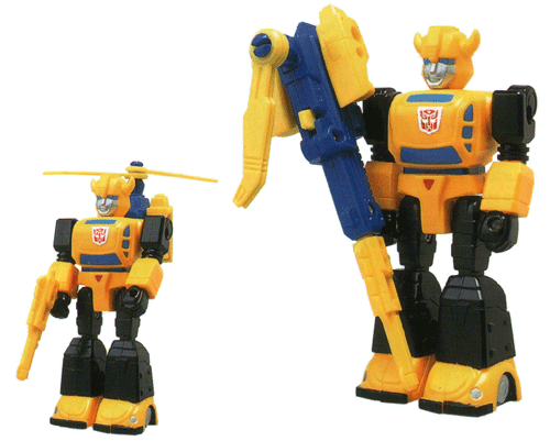 Ok, not so much a partner as an accessory, but it's a fairly useful one. Most of the 1990 classic Actionmaster characters were sold with accessories rather than partners, and many were downright silly, but the Heli-Pack works as a concept. It's blue and yellow, which is a close enough match to Bumblebee himself. It works fairly well as a backpack but not so well as an extended gun - due to it's bulk of course. The pistol itself is yellow, so on it's own fits in which Bumblebee perfectly.