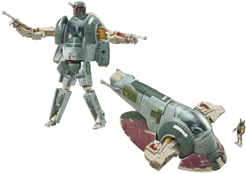 A relatively early Star Wars Transformer, but Boba Fett is clearly better than the earliest toys in the line. Both modes look great, and I am quite impressed that the designer managed to capture such a good impression of Boba Fett on something that also manages to be a spot on Slave I. The play value is pretty poor, overall, since the missile launcher is sidelined in both modes, the poseability is limited and the cockpit isn't too useful. Despite that, this toy will look great on your shelf, so while playing will be frustrating, displaying is worthwhile. Recommended if you don't play to physically interact with the toy to appreciate it - 6.5/10