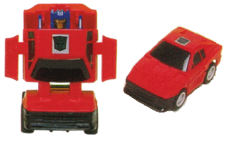 It's a simple car mode, the choice of car model works well and the colours work - especially for a Ferrari. The gimmick works well, and it _is_ a fun gimmick. I had loads of fun with my Throttlebots as a kid, and I still have by original Chase, in good shape despite the beating he copped when I was a child. So not only does it look great, it's durable too...