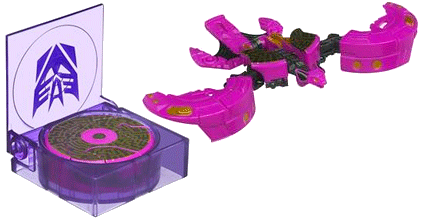 This is a rather indistinct alt mode on it's own. Without Soundwave or Soundblaster, he's little more that a folded up robot. Okay, so he's a data disc - I guess a Cybertronian take on a cassette, but without context there's nothing to see here.