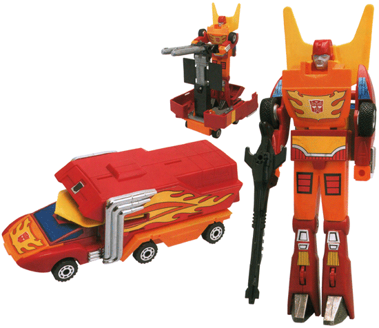 Rodimus Prime isn't a bad toy, but it's not what Hot Rod is, and for me this brings him down somewhat. I get the feeling that Hot Rod was designed first and Rodimus's designer had to work within the boundaries of making Rodimus look like Hot Rod. Ignoring Hot Rod, he's a decent robot with a good gun emplacement and a good vehicle mode. If only it didn't have three integral parts that are so easy to misplace (the wing & two blast shields). I got my reissue solely because it was easier (and cheaper) than finding these three parts. Despite his shortcomings, he's a toy pretty much any G1 fan's going to want anyway, since he lit the Autobot's darkest hour and was the Autobot leader for a large chunk of the Cartoons. Ignoring Hot Rod I give him 7/10, in comparison to Hot Rod that drops to 6.5, solely because I'd really recommend Hot Rod more