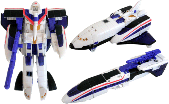 Takara's Henkei version is done in mid grey rather than white, to resemble Astrotrain as seen in the cartoon.