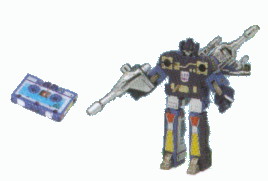 A nice little toy, Frenzy has the honour of being the G1 toy that was on sale longest (by 1987, he was the only original Transformer still on the shelves). Despite his similarity to Rumble, I'd recommend both - they're good toys which featured in the cartoon and both have good colour schemes. Good poseability, colours and aesthetic in robot mode, his only real drawback is the fact that worn or missing stickers can really hurt the cassette mode - 8/10