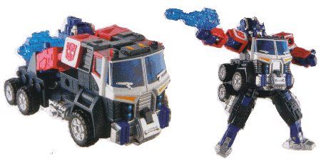 The truck mode is well done, although it's limited by the fact it's a copy of a larger toy, and is pretty much stuck being something unusual. The robot mode is great, his colours work surprisingly well and the transparent blue plastic is a nice change from the silly pinks and greens of a lot of Superlink toys. The whole point of this toy is his ability to combine with other deluxes, and he does that well, so all told Grand Convoy is a good toy - 7.5/10
