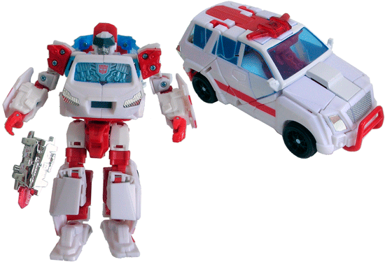 While Ratchet's not a perfect Transformer, this is the first serious effort (BotCon repaints aside) to produce a toy that matches the cartoon Ratchet - and after 25 years, it's well overdue. The robot mode is excellent and the colour scheme is very focussed, and while the vehicle mode is somewhat chopped up, the designer has had to make this work without the liberal dose of cartoon physics that Sunbow was able to rely on. For G1 fans this is an excellent update of Ratchet, and can satisfy cartoon fans in a way that the G1 toy never could, so I'd recommend this toy unequivocally. Leaving the tribute aside, Ratchet is still a good Transformer, even if the robot mode clearly outshines a disappointing vehicle mode. I'd say Ratchet is a touch better than Ironhide, but it's very close - and most fans who are interested in one will want the other anyway - 8.5/10