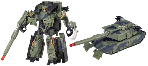 Brawl represents a rarity amongst Transformers - a realistic, detailed tank Transformer. The colours are dull military shades, which suit him quite well. Both the tank and robot modes are detailed and armed to the teeth, matching his name and the basic idea of his vehicle mode. The tank mode's play value isn't quite as good as I'd like, but it's not poor either - and the robot mode is very playable. There are some really nice touches such as the lightpipe and anti-aircraft guns which round out a very nice toy. While the shoulders and gaps under the turret are shortcomings, neither manages to seriously undermine a great effort - 8/10