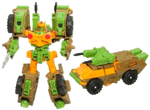 A repaint of CD Hot Shot, as mentioned, who also shares the mould with another G1 themed repaint, BotCon Springer. Roadbuster was sold in a two-pack with Dirge.