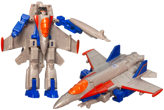 Using one of the stronger Legends moulds from Cybertron, and while there are enough Starscream toys out there this is a decent repaint - despite the silly use of bright orange. The gunpod is his only real play value. If you like small, simple, "cute", Transformers, this is a nice mini Starscream - 6/10